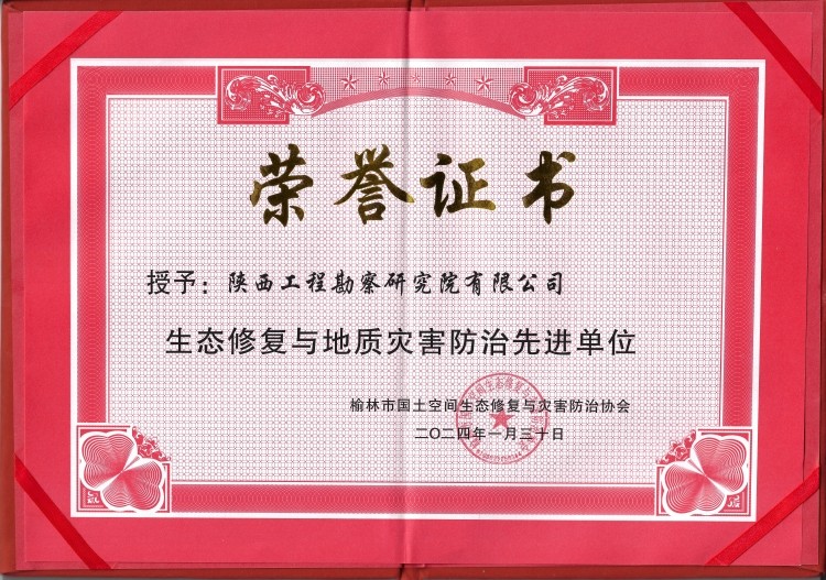 會(huì)議對(duì)生態(tài)修復(fù)與地質(zhì)災(zāi)害防治優(yōu)秀成果、先進(jìn)單位和先進(jìn)個(gè)人進(jìn)行了表彰并舉行了隆重的頒獎(jiǎng)儀式。陜西工勘院承攬實(shí)施的《榆林市光伏發(fā)電項(xiàng)目用地潛力評(píng)價(jià)項(xiàng)目》被協(xié)會(huì)授予“優(yōu)秀成果”獎(jiǎng)項(xiàng);陜西工勘院榮獲“先進(jìn)單位”;項(xiàng)目負(fù)責(zé)人郭江波獲“先進(jìn)個(gè)人”榮譽(yù)稱(chēng)號(hào)。
